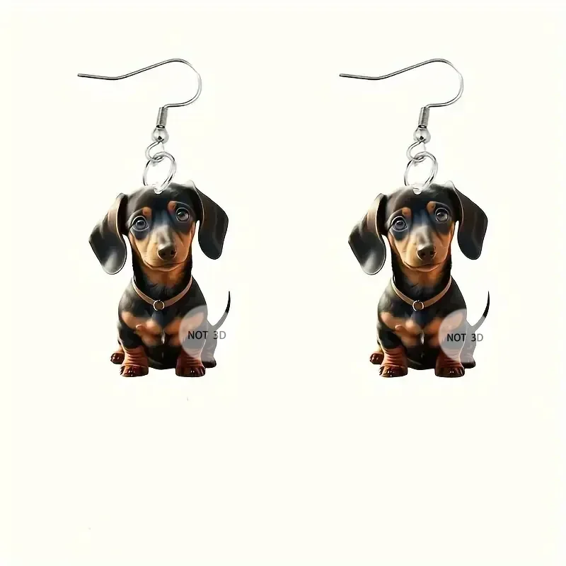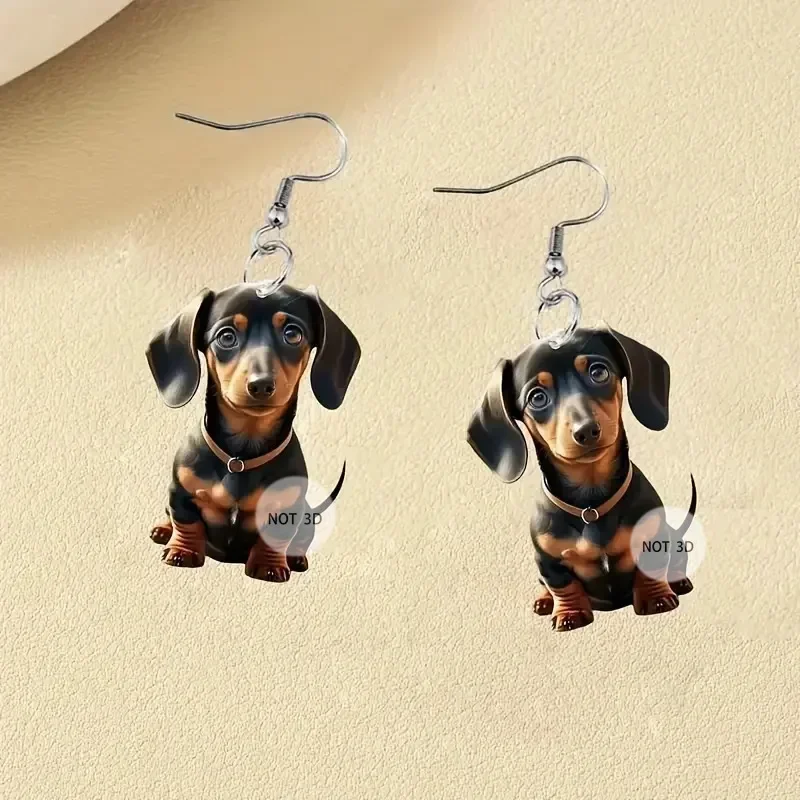 Cartoon Dachshund Earrings - Cute 2D Acrylic Puppy Dangle Jewelry Gift