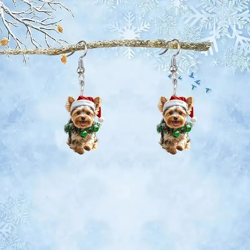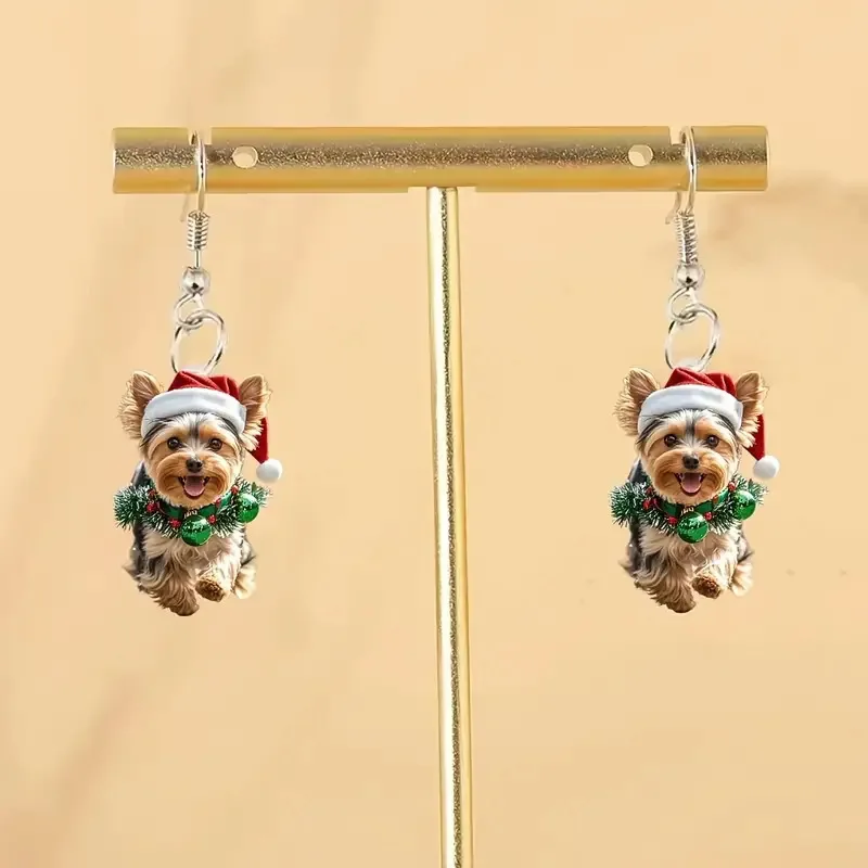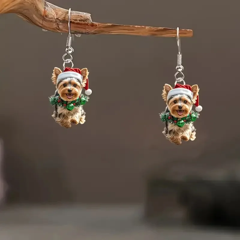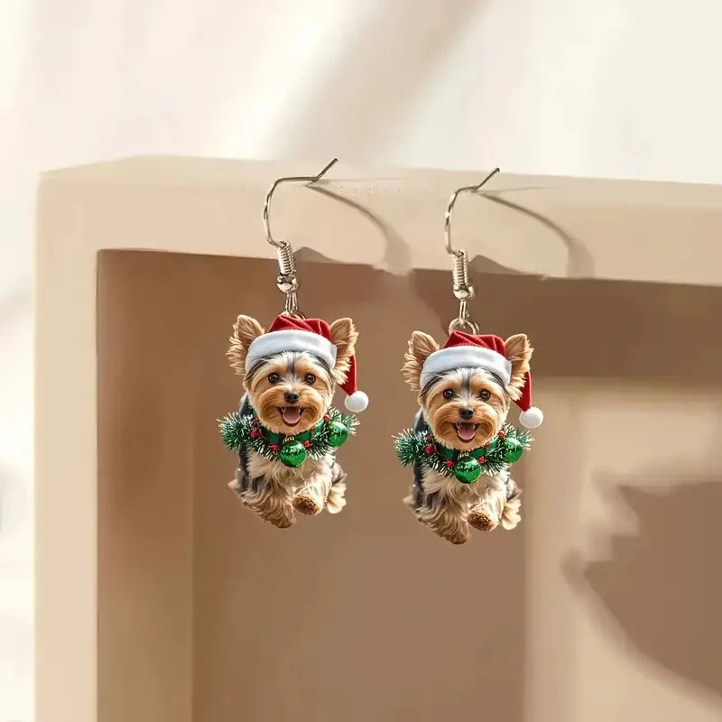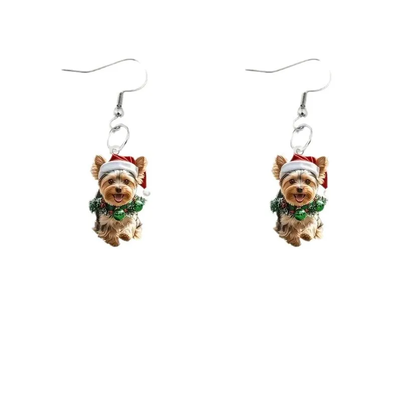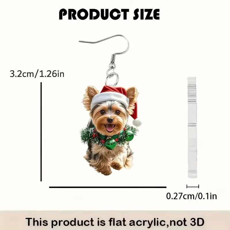 Cute Christmas Puppy Earrings 2D Flat Acrylic Small Animals Pendant Earrings Fashion Girl Jewelry Gift for Party Decoration